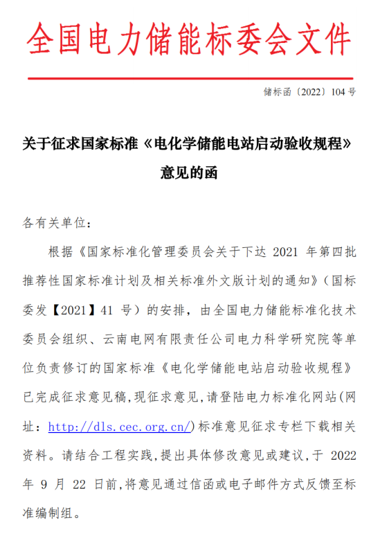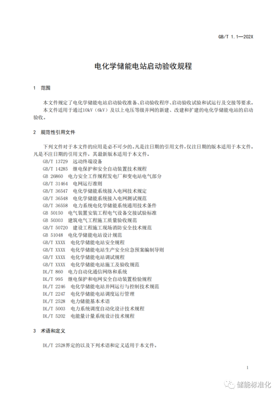 國家標準《電化學儲能電站啟動驗收規(guī)程》征求意見