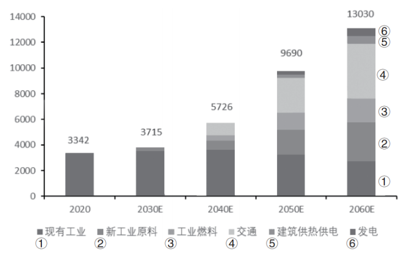 圖2 我國氫氣消費(fèi)需求預(yù)測