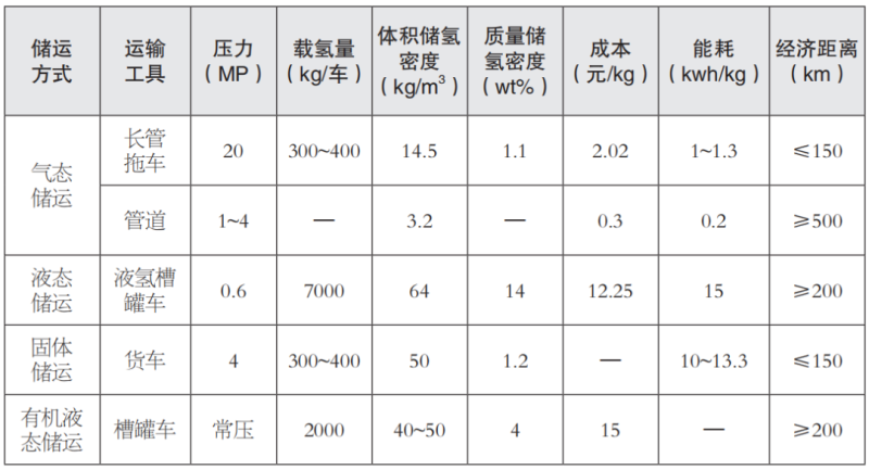 高壓氣氫儲運(yùn)運(yùn)營成本低、能耗相對小、氫氣充放響應(yīng)速度快,適用于短距離、用戶分散場合,是目前運(yùn)用最普遍的儲運(yùn)方式,但對設(shè)備承壓要求高、單位體積儲氫密度低、安全性較低。隨著運(yùn)輸距離的增加,運(yùn)輸成本會大幅上升。低溫液氫儲運(yùn)儲氫能量密度高、運(yùn)輸效率高,適用于中遠(yuǎn)距離輸送,目前主要作為航空運(yùn)載火箭推進(jìn)劑燃料,對儲氫裝置真空絕熱、減振抗沖擊、防泄漏性能要求高,且深冷液化存在大量消耗,成本較高。管道氫輸送運(yùn)輸成本低、能耗小,可實(shí)現(xiàn)氫能連續(xù)性、規(guī)模化、長距離輸送,是未來氫能大規(guī)模利用的必然發(fā)展趨勢。但由于管道鋪設(shè)難度大,一次性投資成本高,目前應(yīng)用量不大。