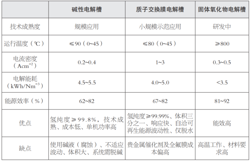 表2 我國主要電解水制氫技術(shù)優(yōu)缺點(diǎn)對比