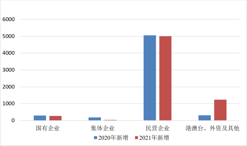 圖3 2020年、2021年不同經(jīng)濟性質(zhì)承裝(修、試)企業(yè)數(shù)量變化情況