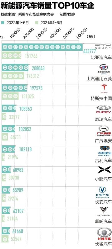 數(shù)據(jù)顯示,比亞迪今年上半年售出64.1萬輛汽車,同比增長高達(dá)300%以上,這一數(shù)字超過了特斯拉56.4萬輛的半年銷量。“比亞迪已經(jīng)率先宣布從今年3月起停止燃油汽車生產(chǎn),將專注純電動和插電混動汽車業(yè)務(wù)?!蓖鮽鞲Uf。