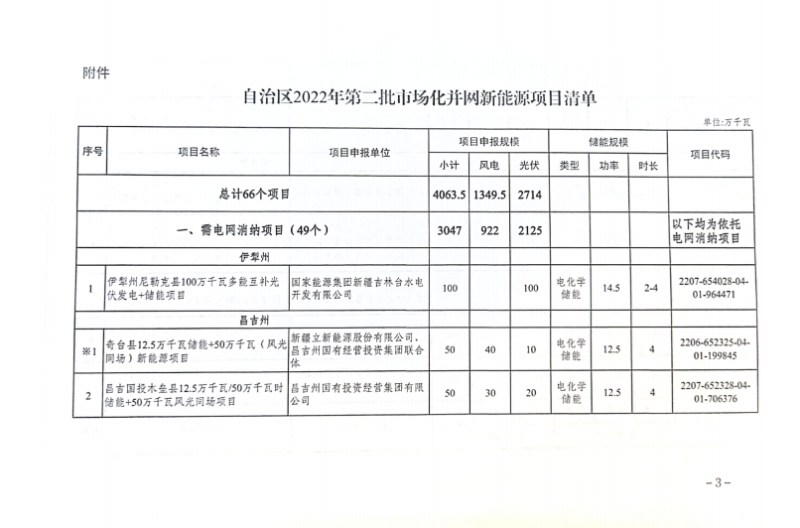 中國儲能網(wǎng)訊:近日,新疆公布2022年第二批市場化并網(wǎng)新能源項(xiàng)目清單,總計66個項(xiàng)目,規(guī)??傆嫗?0.63GW,其中光伏為27.14GW,風(fēng)電為13.49GW,儲能超6.9GW。其中有32個項(xiàng)目為近1個月內(nèi)購開工建設(shè)的項(xiàng)目,按照地州及企業(yè)承諾以盡快開工。源網(wǎng)荷儲一體化項(xiàng)目不得向大電網(wǎng)送電。