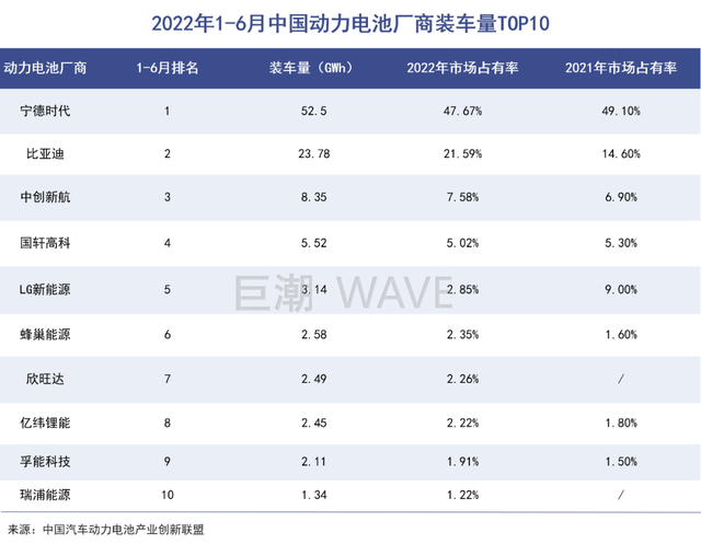 另一個可以提供佐證的事實是,LG新能源和松下在中國的市場份額已經(jīng)被國產(chǎn)企業(yè)所分食,本土品牌獲得絕對優(yōu)勢。根據(jù)最新數(shù)據(jù),上半年國內(nèi)裝機量排名前十的動力電池廠商中,只有LG新能源一家外資企業(yè),市占率為2.85%;而就在兩年前,兩家外資企業(yè)的市場份額還都在10%以上。