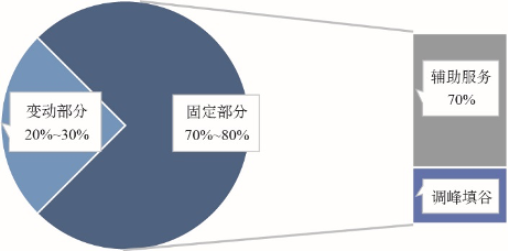 固定部分收入約占抽水蓄能電站全年總收入的70%~80%,其中輔助服務(wù)補(bǔ)償費(fèi)約占固定部分收入的70%。