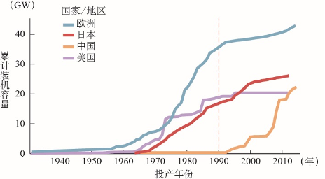 20世紀(jì)90年代,受經(jīng)濟(jì)發(fā)展形勢(shì)和電力市場(chǎng)化改革等影響,歐美國(guó)家的抽水蓄能電站建設(shè)進(jìn)程放緩。日本超過(guò)美國(guó)成為抽水蓄能電站裝機(jī)容量最大的國(guó)家,到20世紀(jì)末裝機(jī)規(guī)模達(dá)到2082萬(wàn)千瓦。中國(guó)也在這個(gè)階段逐步進(jìn)入蓬勃發(fā)展時(shí)期,但總體而言日本、美國(guó)和西歐諸國(guó)抽水蓄能電站裝機(jī)容量之和仍占到世界抽水蓄能電站總裝機(jī)容量的80%以上。