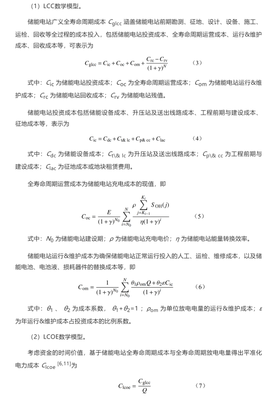 本文對比研究相同應(yīng)用效能下抽水蓄能與電化學(xué)儲能的廣義成本,包括儲能電站LCC與LCOE,以抽水蓄能、鋰離子電池儲能、鉛炭電池儲能、全釩液流電池儲能應(yīng)用效能一致為基準(zhǔn),分析不同類型儲能的容量需求,考慮多重技術(shù)經(jīng)濟(jì)因素,提出基于等效能折算的儲能廣義全壽命周期成本模型與平準(zhǔn)化電力成本模型,構(gòu)建儲能調(diào)峰運(yùn)行模式下的成本評估算例,分析4種儲能技術(shù)的成本競爭力,并識別關(guān)鍵影響參量。