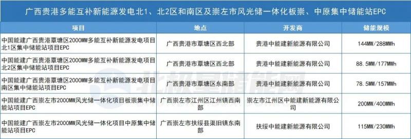 根據(jù)系統(tǒng)初步規(guī)劃,中國能建廣西貴港覃塘區(qū)2000MW多能互補(bǔ)新能源發(fā)電項(xiàng)目和中國能建廣西崇左市2000MW風(fēng)光儲一體化項(xiàng)目將建設(shè)5個(gè)儲能站,擬分為5個(gè)標(biāo)段進(jìn)行招標(biāo)。在新能源相對集中的北1區(qū)光伏匯集站、北2區(qū)光伏匯集站、南區(qū)光伏匯集站、板崇光伏匯集站、中原光伏匯集站旁分別建設(shè)配套集中儲能電站。其中,北1區(qū)光伏匯集站旁儲能電站規(guī)模144MW/288MWh,北2區(qū)光伏匯集站旁儲能電站規(guī)模88.5MW/177MWh,南區(qū)光伏匯集站旁儲能電站規(guī)模78.5MW/157MWh,板崇光伏匯集站旁儲能電站規(guī)模200MW/400MWh,中原光伏匯集站旁儲能電站規(guī)模115MW/230MWh。最終以接入系統(tǒng)審查意見為準(zhǔn)。儲能電站與光伏匯集站同步建成,儲能系統(tǒng)設(shè)備可隨新能源發(fā)電項(xiàng)目分批同步投建、同步并網(wǎng)。