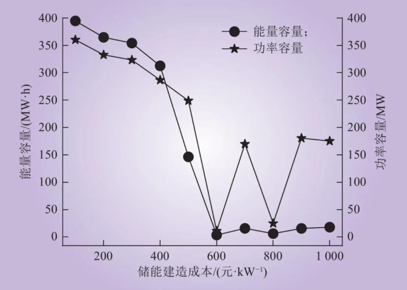 圖10 全開放市場(chǎng)下儲(chǔ)能成本對(duì)儲(chǔ)能容量的影響