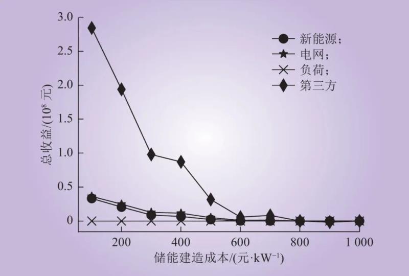 圖9 全開放市場(chǎng)下儲(chǔ)能成本對(duì)各方收益的影響