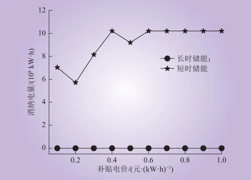 (2)長(zhǎng)時(shí)儲(chǔ)能消納潛力較大,但對(duì)儲(chǔ)能容量需求高,在儲(chǔ)能成本較高的情況下,補(bǔ)貼激勵(lì)作用效果不明顯。