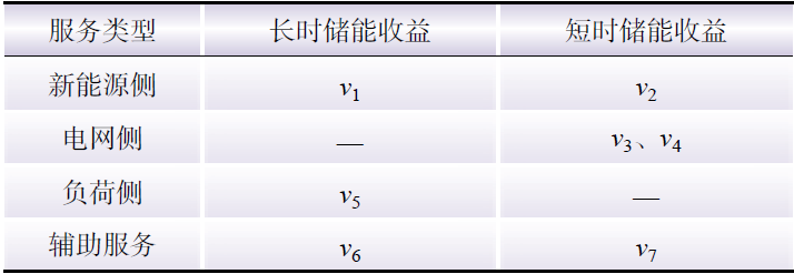 表 1 儲(chǔ)能服務(wù)不同使用實(shí)體的收益構(gòu)成