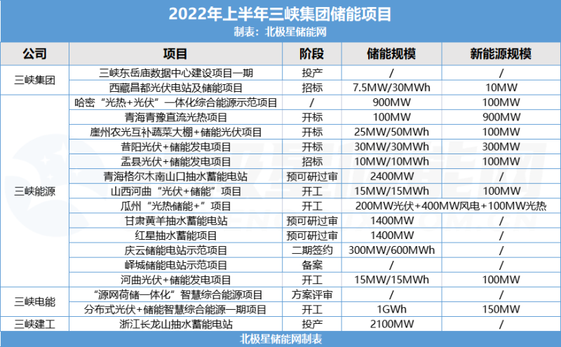 除此之外,據(jù)北極星儲能網(wǎng)不完全統(tǒng)計,2022年起截至日前,三峽集團儲能布局已遍布青海、浙江、山西、甘肅、山東等多個省市地區(qū),18個儲能項目具體情況如下:
