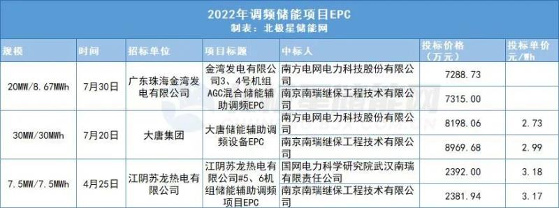 另外大唐儲能調(diào)頻EPC開標(biāo)價(jià)格,較4月價(jià)格有下降趨勢。據(jù)北極星儲能網(wǎng)統(tǒng)計(jì),2022年以來,已有3個(gè)調(diào)目完成了EPC招標(biāo)并且其中2個(gè)都采用了1C系統(tǒng)。此次大唐儲能調(diào)頻EPC為今年目前已知調(diào)頻EPC最低價(jià)格。