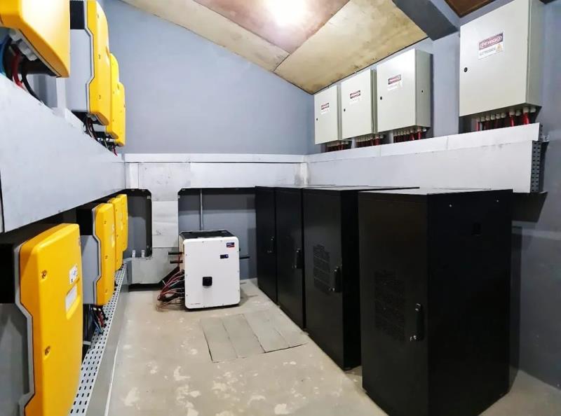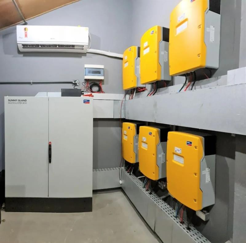 儲能系統(tǒng)采用12臺適用于離網(wǎng)島嶼項目的SMA Sunny Island儲能逆變器,搭載UZ Energy深圳昱澤提供的電池系統(tǒng)--4臺電池柜,每臺機柜內(nèi)包含7組電池。
