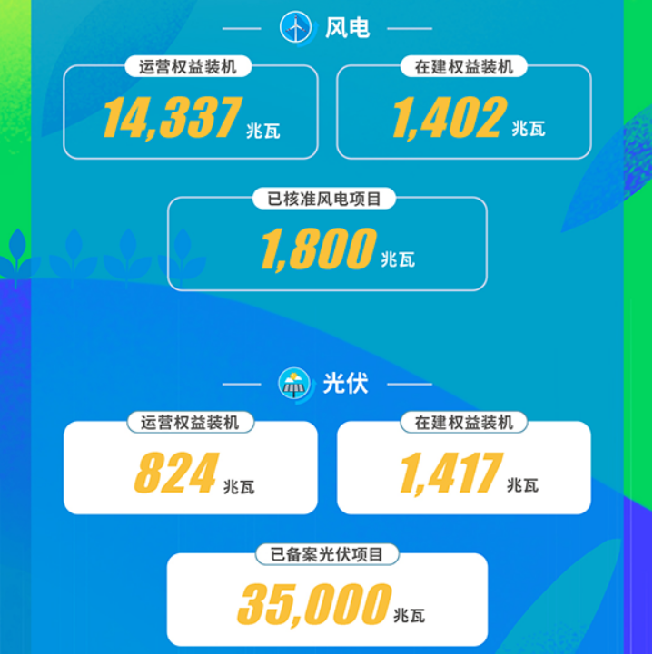 2021年,風電、光伏累計新增權益裝機2.535GW;
