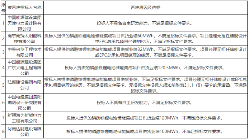 此外,本次共有8名被否決投標(biāo)人,企業(yè)名稱及否決原因如下: