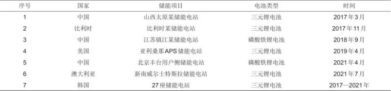 表2 全球鋰離子電池儲(chǔ)能電站火災(zāi)事故不完全統(tǒng)計(jì)
