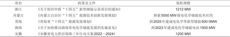 表1 各地方出臺(tái)“十四五”規(guī)劃文件電化學(xué)儲(chǔ)能裝機(jī)量