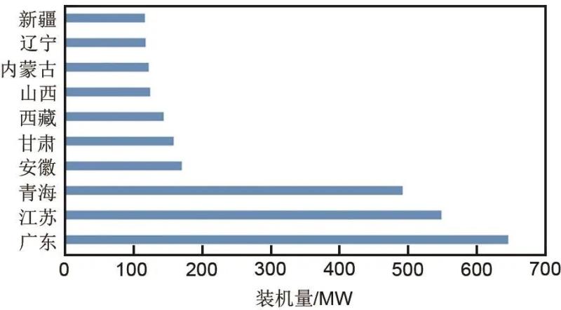 圖1 2020年國(guó)內(nèi)電化學(xué)儲(chǔ)能裝機(jī)主要省份及裝機(jī)量