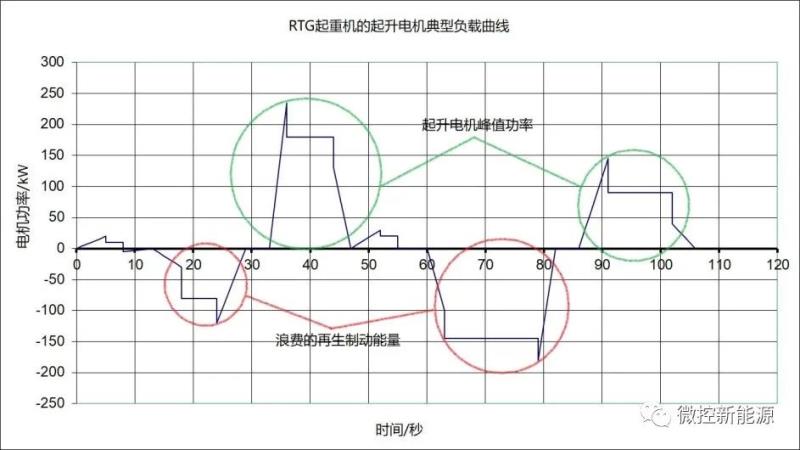 傳統(tǒng)的RTG由柴油發(fā)電機組驅(qū)動,起升時,是典型的短時高頻次沖擊性負荷;下放時,產(chǎn)生再生制動能量,并消耗在制動電阻上,效率低、能耗大、成本高、噪音大、環(huán)境污染嚴重。