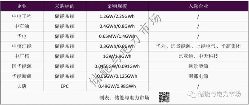 在儲能系統集采方面,共有中電工程、中石油、華電、中核匯能、中廣核、國華能源、華能新疆公司等7家企業(yè)啟動了儲能系統集采招標工作,大唐則圍繞內蒙儲能項目正在開展EPC招標。上述集采總規(guī)模合計達4.146GW/8.146GWh。其中,中電工程的儲能系統集采規(guī)模最大,達1.2GW/2.25GWh。