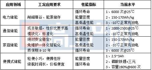 不同應(yīng)用場(chǎng)景對(duì)儲(chǔ)能鋰電池的要求及性能水平介紹