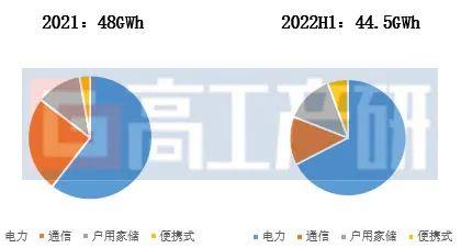根據(jù)GGII半年度調(diào)研,2022年H1儲(chǔ)能鋰電池出貨量達(dá)到44.5GWh,整體規(guī)模已接近2021年全年水平。其中電力儲(chǔ)能占比超60%,戶(hù)用家儲(chǔ)和便攜式儲(chǔ)能表現(xiàn)超乎預(yù)期,通信儲(chǔ)能出貨節(jié)奏相對(duì)平緩。