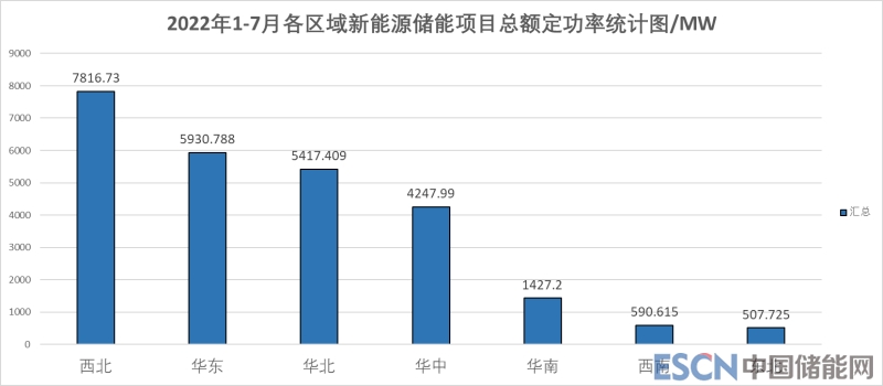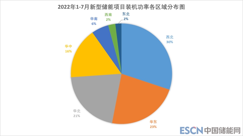 由各區(qū)域新能源項(xiàng)目總裝機(jī)功率統(tǒng)計圖可以看出,2022年1-7月新能源裝機(jī)主要集中在西北、華北、華中和華東地區(qū),分別占比30%、23%、21%和16%.