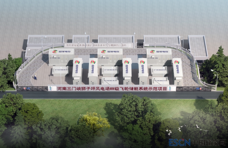 河南獅子坪風(fēng)電場隸屬于國家電投集團(tuán)河南電力有限公司,位于河南省三門峽市陜州區(qū),風(fēng)電場安裝24臺2MW風(fēng)力發(fā)電機(jī)組,總裝機(jī)容量48MW。獅子坪風(fēng)電場送出線路接入220kV雁翎變電站35kV母線,經(jīng)變電站升壓后并入電網(wǎng)。該項目計劃在國家電投獅子坪風(fēng)電場交流35kV并網(wǎng)系統(tǒng)側(cè)配置5MW/175kWh的飛輪陣列儲能系統(tǒng)。效果圖如下: