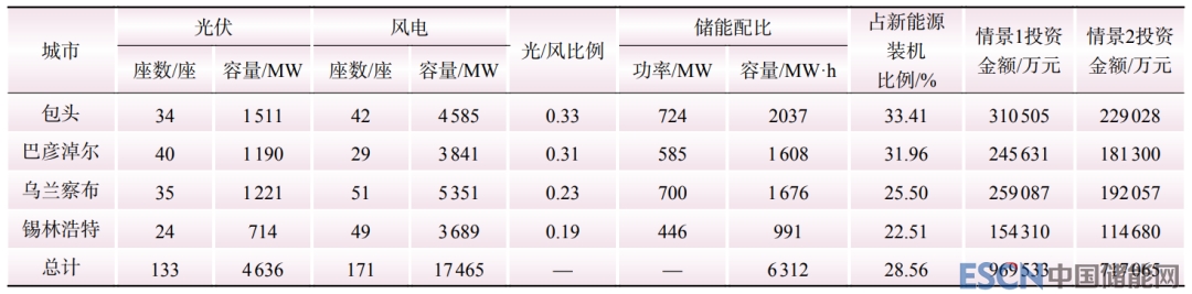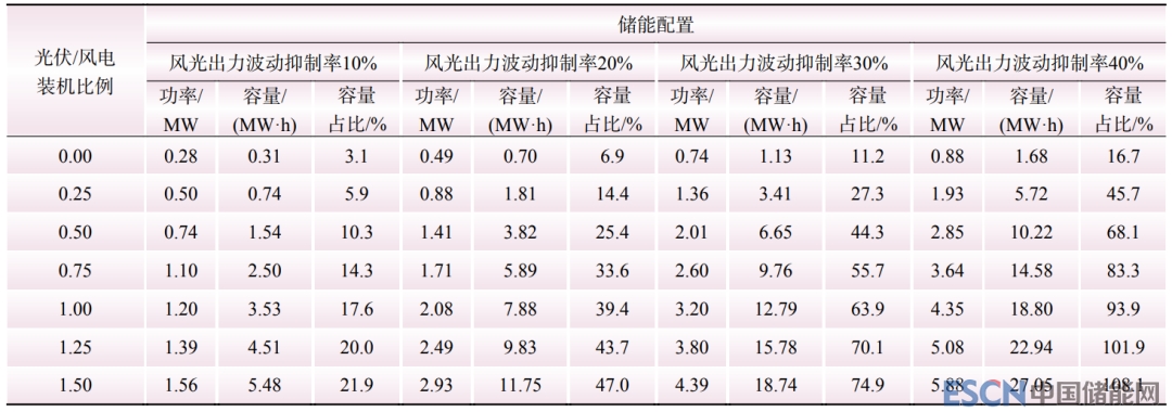 Table 7 Energy storage configuration scheme under different ratios of PV installed capacity to wind power installed capacity