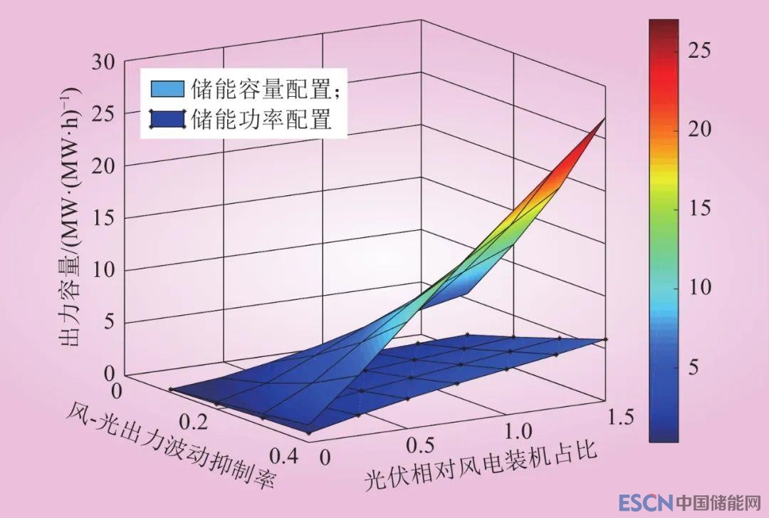 (1)不同風(fēng)光裝機(jī)比例對儲能配置的影響。