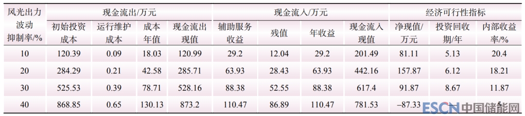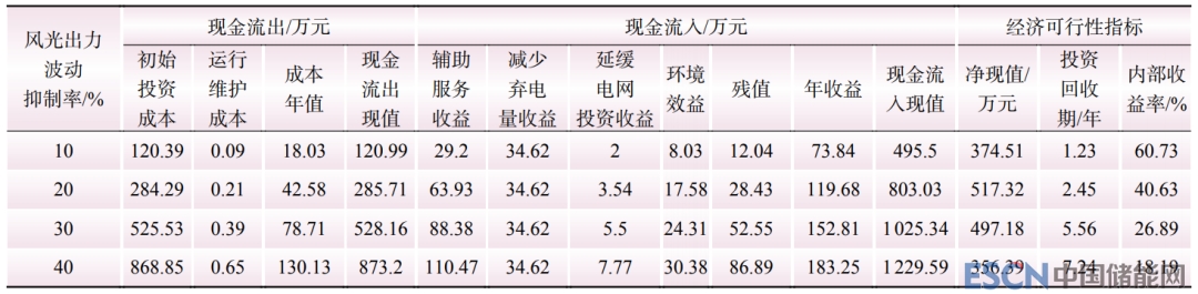 表4 不同風(fēng)光出力波動抑制率下儲能系統(tǒng)配置方案