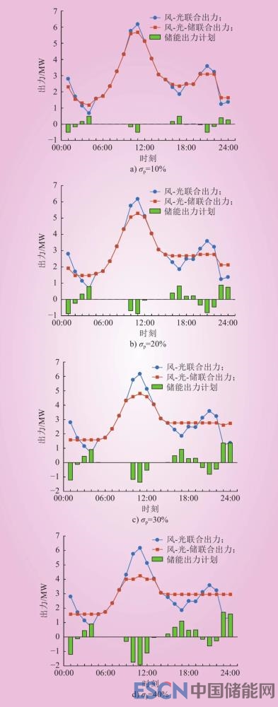 Fig.4 Wind power-PV-storage joint output under different σp