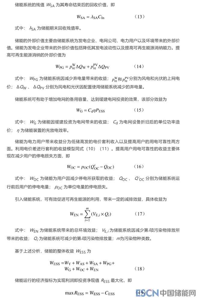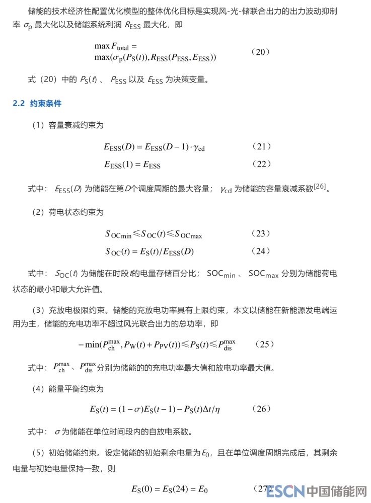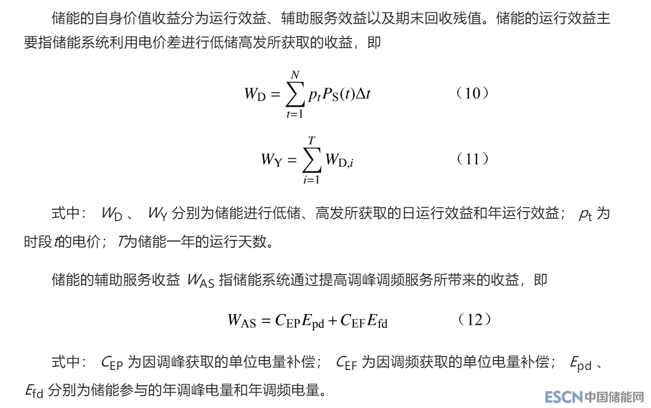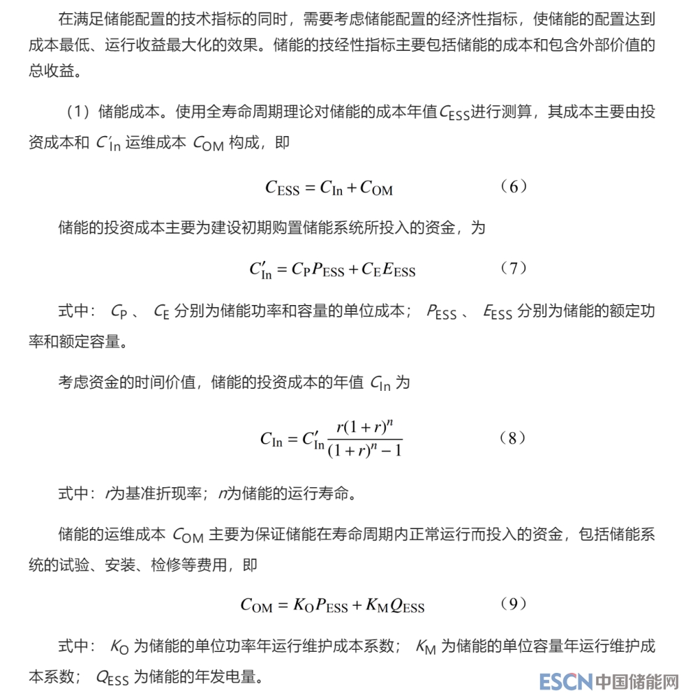 2 儲能技術(shù)經(jīng)濟(jì)性優(yōu)化配置模型