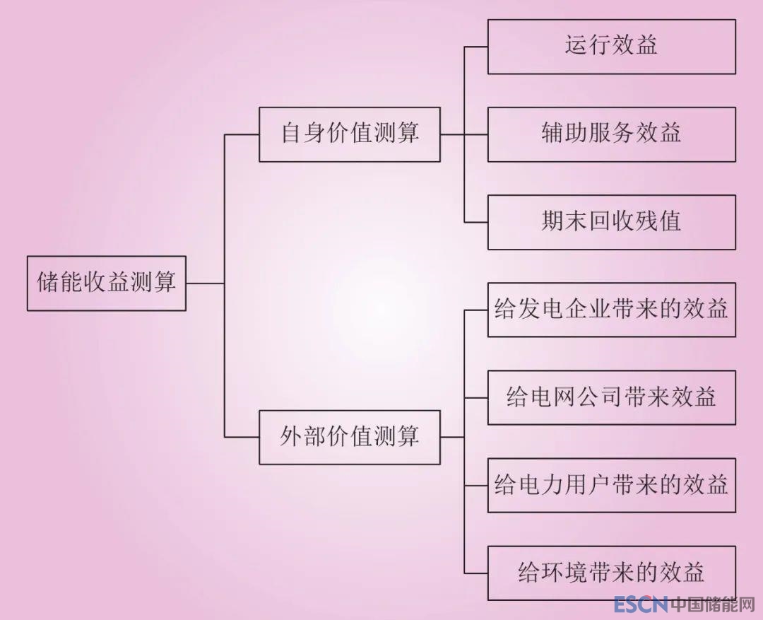 (2)儲能收益。儲能的收益測算主要包括自身價值測算和外部價值測算。其收益構(gòu)成如圖1所示。