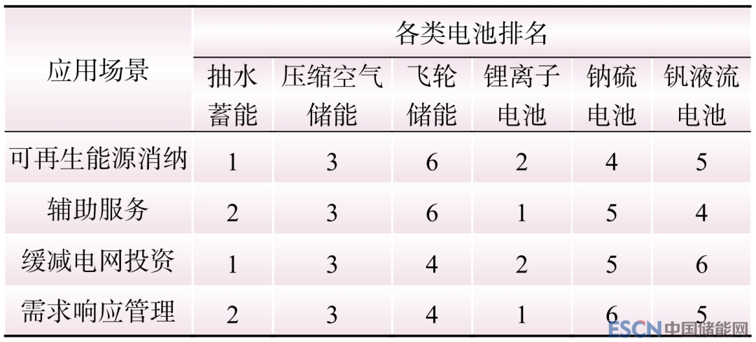 Table 2 Type selection and sorting for energy storage in various application scenarios