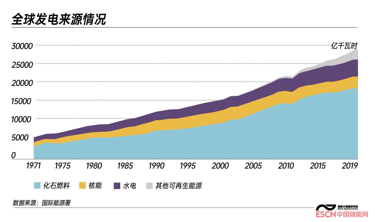 數(shù)據(jù)顯示,以煤炭、石油、天然氣為主的化石燃料在過(guò)去30年為全世界發(fā)電主要能源來(lái)源,在2019年占據(jù)全球發(fā)電量的63.3%。而包括水電、風(fēng)能、太陽(yáng)能、地?zé)崮芎统毕茉趦?nèi)的可再生能源比例逐年增加,占據(jù)2019年全球發(fā)電量的26.5%。世界對(duì)于傳統(tǒng)化石燃料的依賴(lài)依然比較嚴(yán)重。