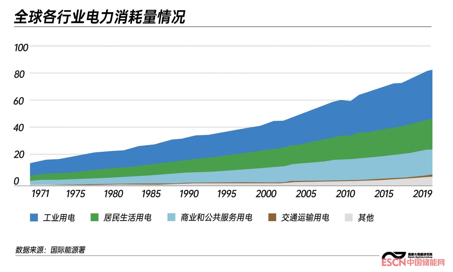 據(jù)國(guó)際能源署統(tǒng)計(jì),全球電力消耗在過(guò)去50年里增長(zhǎng)近4倍,其中,工業(yè)用電占據(jù)總消耗量超四成。此外,商業(yè)和公共服務(wù)用電也占了總電力消耗量的兩成。