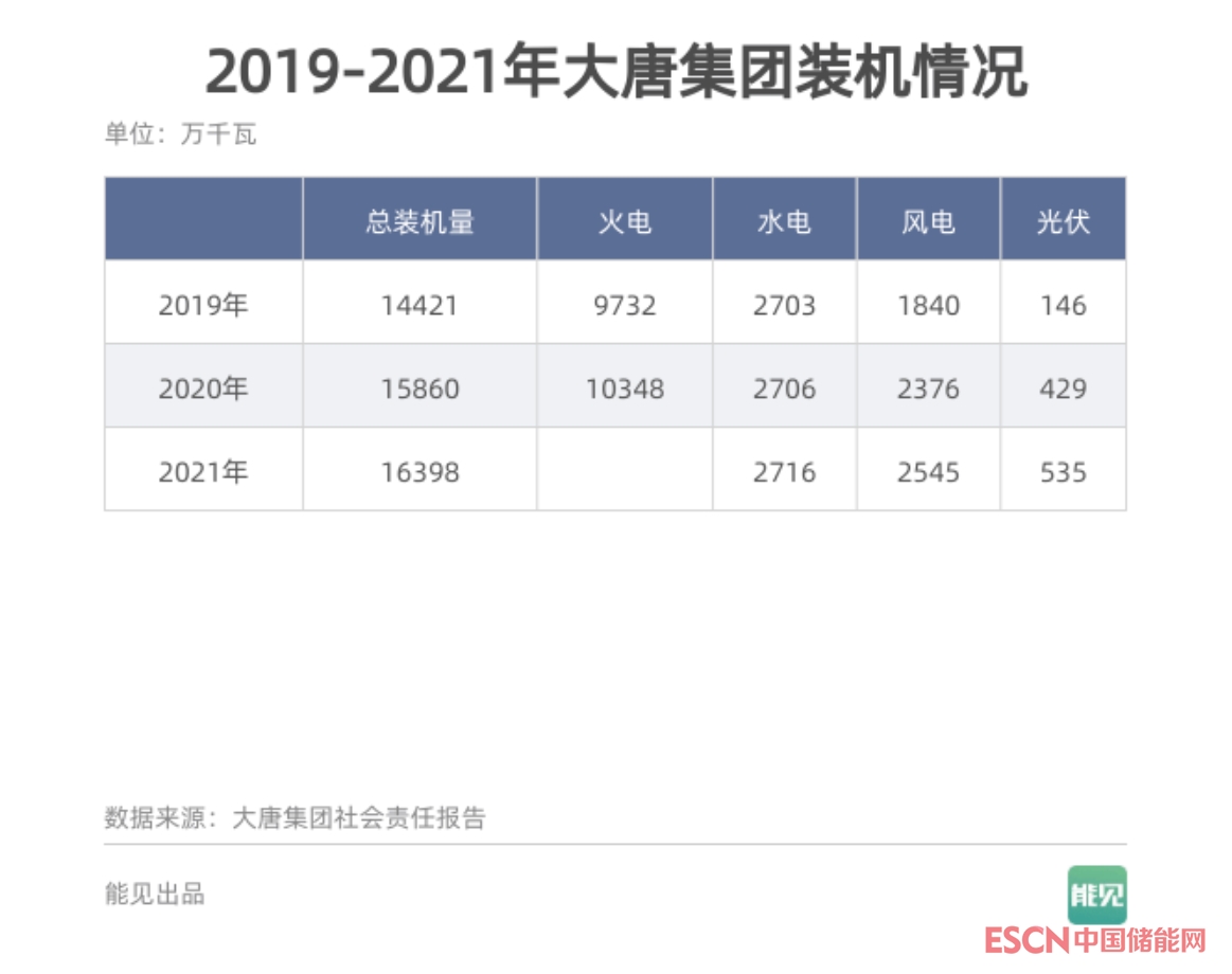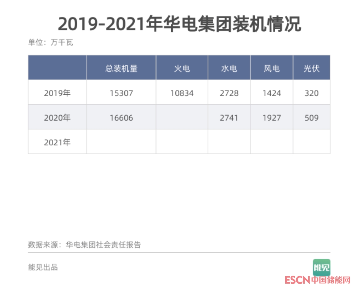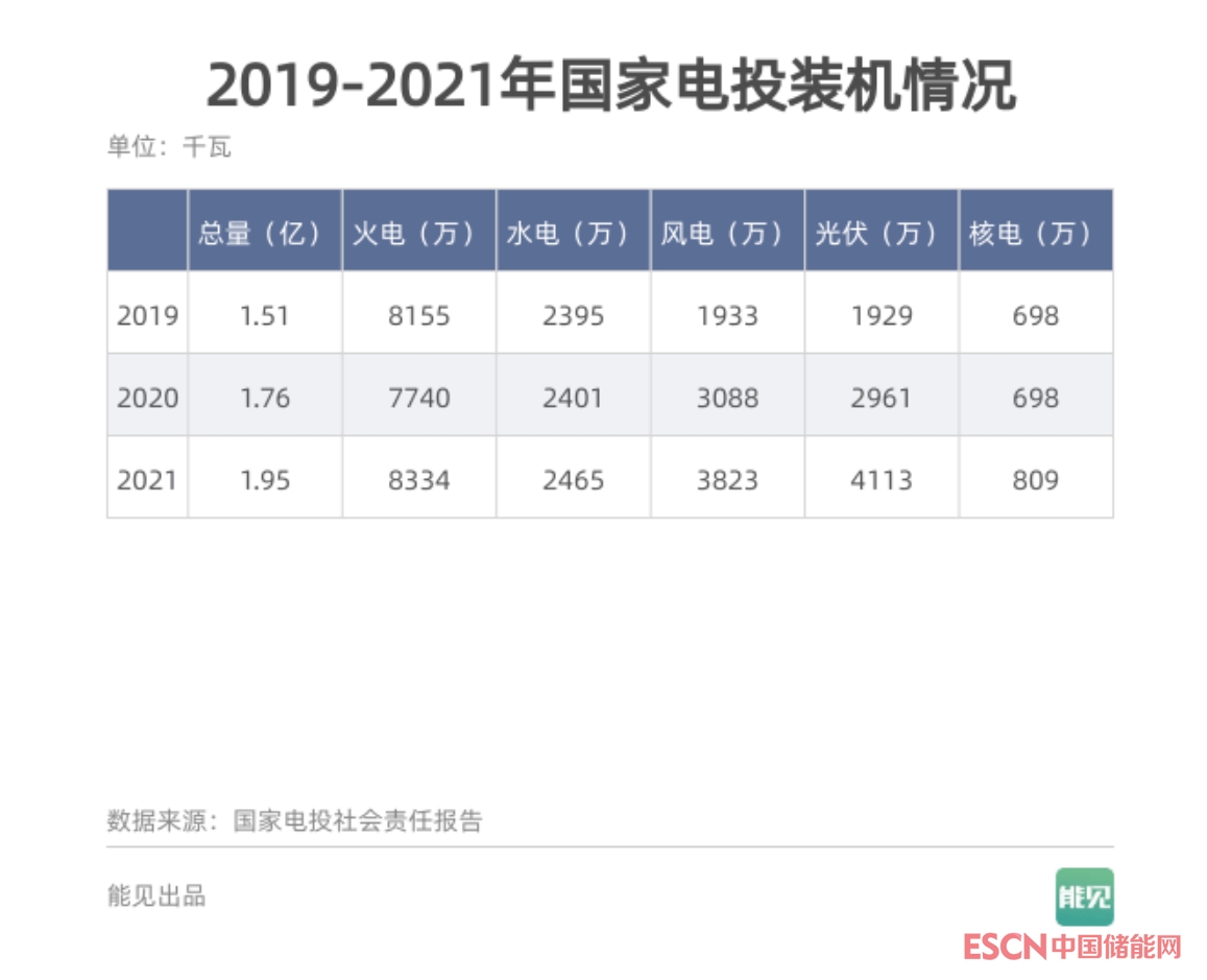從折線斜率可以清晰看出,只有國家能源集團(tuán)2021年新增裝機(jī)量高于2020年,華能、大唐、國家電投三家則2021年增量低于2020年,華電缺失數(shù)據(jù)(僅發(fā)布新聞,未發(fā)布完整版報(bào)告)。