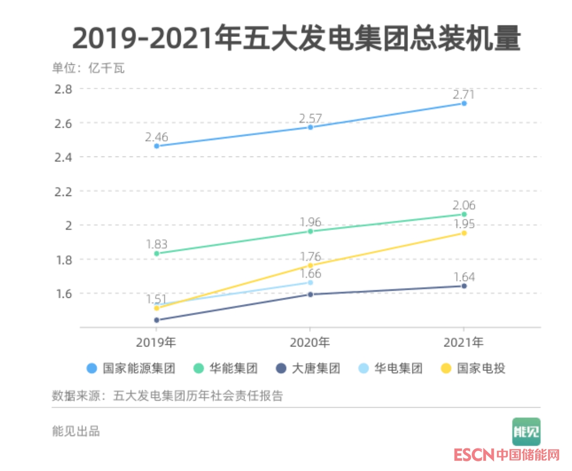 中國儲能網(wǎng)訊:近日,五大發(fā)電集團(tuán)陸續(xù)發(fā)布2021年度社會責(zé)任報(bào)告。今天,“下笨功夫的能見”就為大家梳理一下各家企業(yè)近三年裝機(jī)量變化圖。