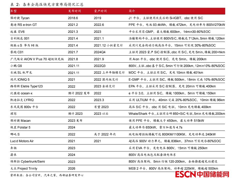 事實(shí)上,特斯拉之后,越來(lái)越多的車企正在快速應(yīng)用SiC。近期,小鵬汽車推出國(guó)內(nèi)首個(gè)量產(chǎn)800V高壓SiC平臺(tái),可實(shí)現(xiàn)充電5分鐘,補(bǔ)充續(xù)航里程200km的能力。此前,比亞迪預(yù)計(jì)到2023年,電動(dòng)汽車將完全用SiC基車用功率半導(dǎo)體替代硅基IGBT。