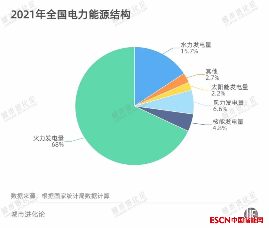 此外,新疆也是“隱藏”的火電大戶,占比超過80%。數(shù)據(jù)顯示,2002年至2021年,其火力發(fā)電量增長22.3倍,同期總發(fā)電量增長23.4倍,保持同步增長。