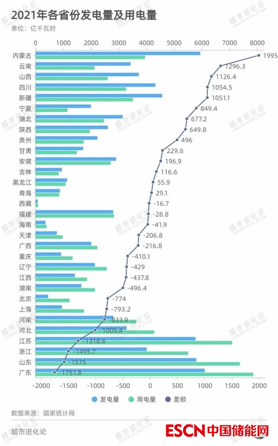 城叔注意到,盡管2021年電力消費量大于發(fā)電量的省份數(shù)量仍為17個,但壓力值已陡然升級——
