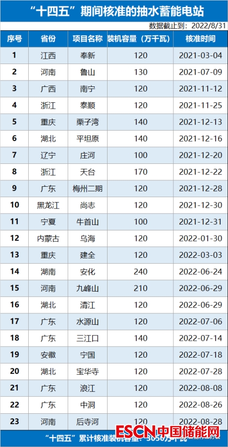 中國(guó)儲(chǔ)能網(wǎng)訊:截至 2022 年 8 月 31 日,“十四五”已核準(zhǔn) 23 座抽水蓄能電站,總裝機(jī)規(guī)模 3050 萬千瓦,項(xiàng)目投資規(guī)模超過 2000 億元。