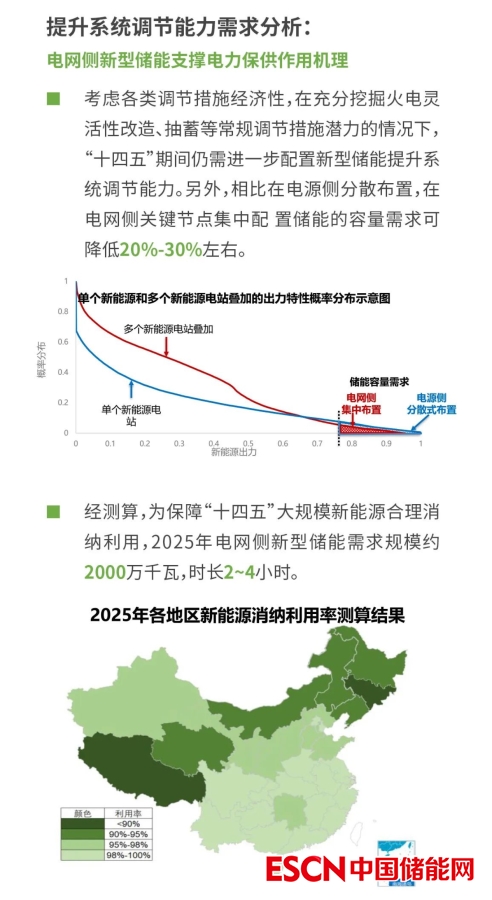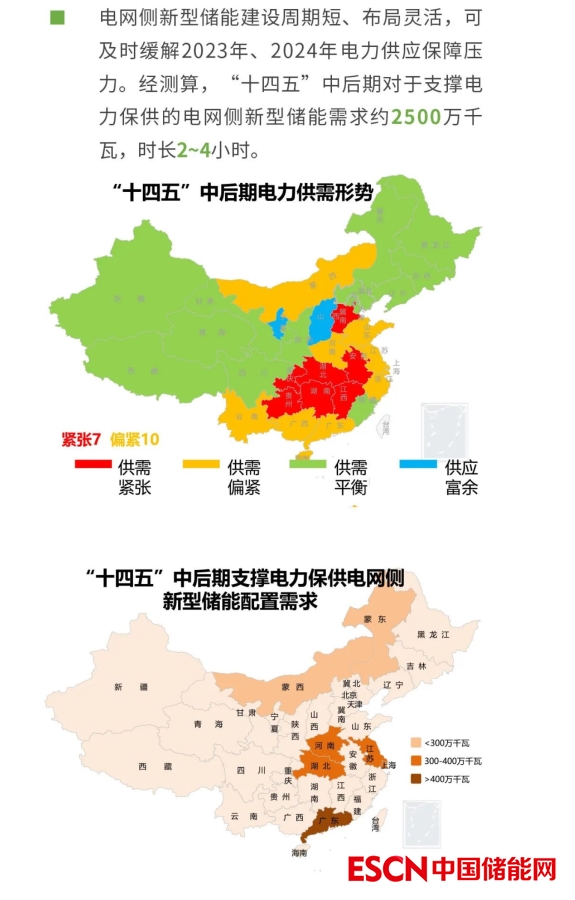 電規(guī)總院表示電網(wǎng)側(cè)新型儲(chǔ)能是未來新型電力系統(tǒng)構(gòu)建的重要支撐。據(jù)預(yù)測(cè),“十四五”全國(guó)電網(wǎng)側(cè)新型儲(chǔ)能總需求規(guī)模約5500萬千瓦,時(shí)長(zhǎng)2~4小時(shí)。應(yīng)用場(chǎng)景以支撐電力保供、提升地區(qū)電力系統(tǒng)調(diào)節(jié)能力為主,三北地區(qū)規(guī)模需求略高于中東部地區(qū)。