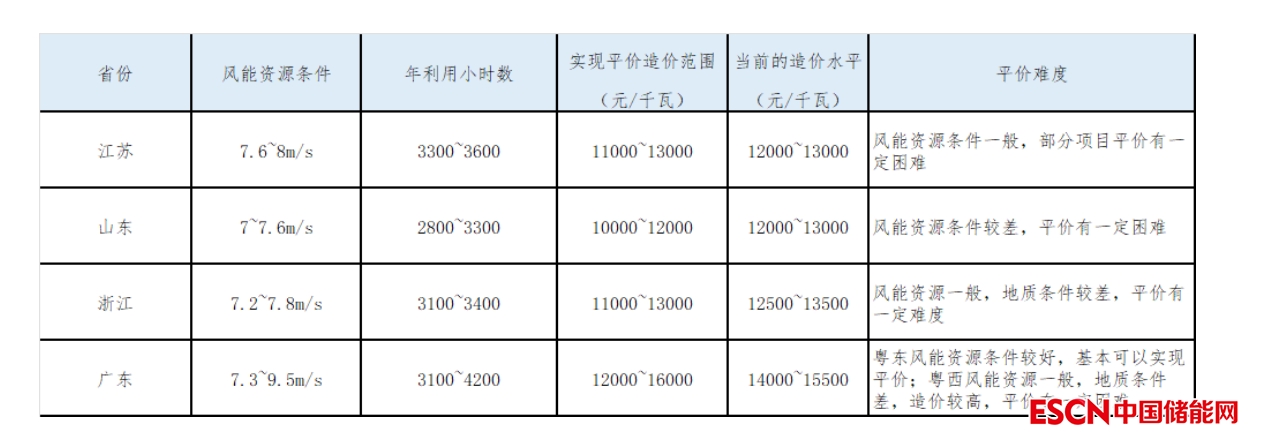 可見,在0.193元/千瓦時的電價下,這個項目只能是賠本買賣。其他主要海上風(fēng)電省份的風(fēng)能資源稟賦與地質(zhì)條件普遍相對較差,目前除了個別項目外,大部分地區(qū)的海上風(fēng)電項目并不具備平價的條件。