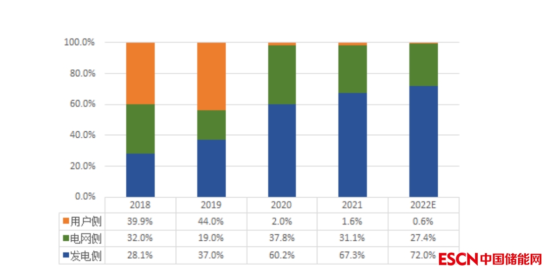 電化學儲能產(chǎn)業(yè)鏈下游的應用場景主要有發(fā)電側(cè)、電網(wǎng)側(cè)和用戶側(cè)儲能等。近幾年間,我國發(fā)電側(cè)電化學儲能裝機占下游應用領域總裝機的比重不斷增長,而用戶側(cè)的電化學儲能裝機占比呈現(xiàn)下降趨勢,此外,由于成本疏導等問題,電網(wǎng)對電化學儲能的熱衷度并不如抽水蓄能。隨著新能源的快速發(fā)展,儲能電站的需求規(guī)模越來越大,電化學儲能應用場景將越來越豐富。