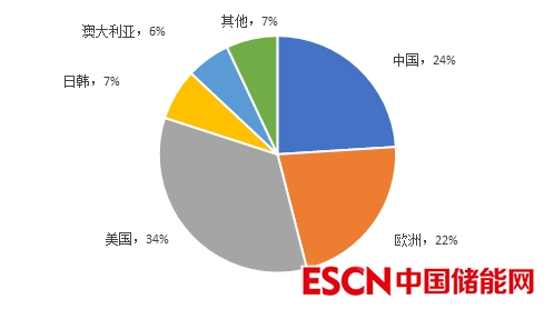 圖7 2021年全球新型儲能新增裝機地區(qū)分布