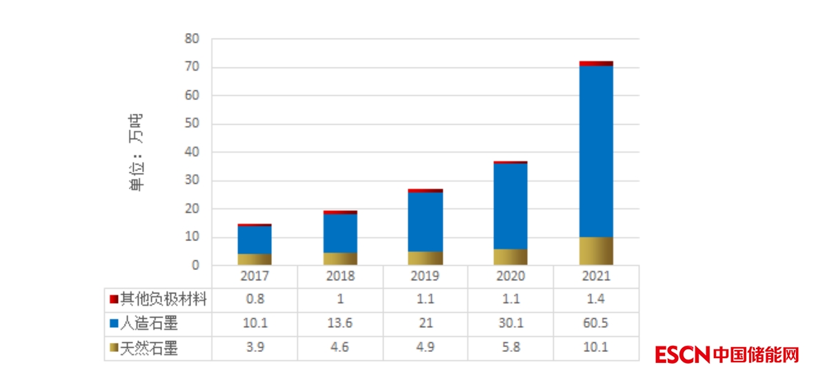 負極材料把握著電池安全命脈,成本約占電池成本的20%。常見的負極材料有碳負極材料、錫基負極材料、含鋰過渡金屬氮化物負極材料、合金類負極材料和納米級負極材料,其中,碳材料因具有低電化學電勢、良好的循環(huán)性能、無毒、廉價且穩(wěn)定等優(yōu)點,是目前市場中最成熟的鋰離子電池負極材料。碳材料分為石墨與非石墨兩大類,石墨中的人造石墨因優(yōu)異的循環(huán)性能及一致性,近年來在市場中占比持續(xù)提升,2021年市場份額達84%。